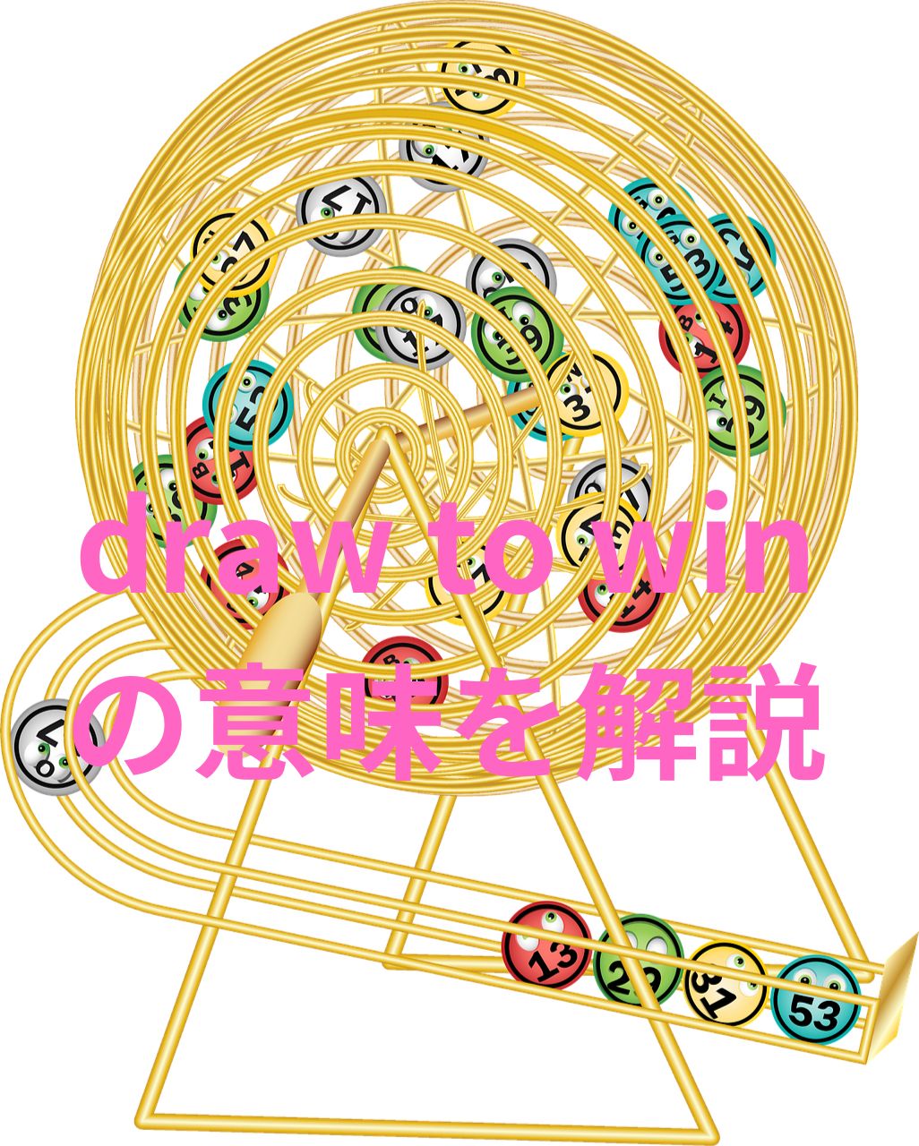 「draw to win」は、直訳すると「勝つために引き分ける」という意味になりますが、抽選で賞品を獲得する機会を得られることを示す表現です。「~が当たる抽選」や「~が当たる」と訳されます。